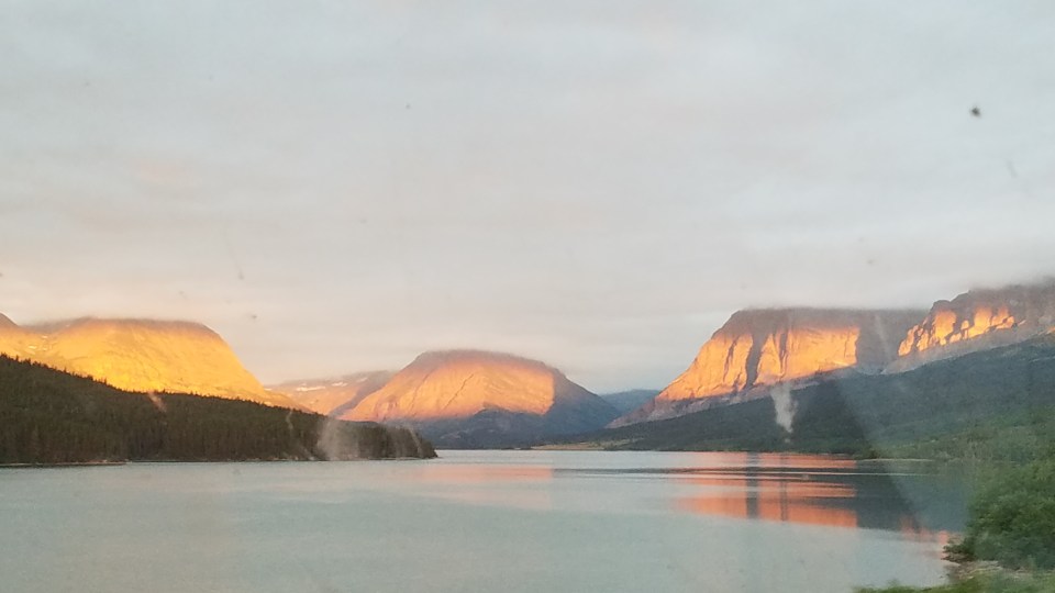Driving north to Many Glacier Monday morning at 5:30 am to get in line for a camp site. Didn’t get one, but the scenery made it worth the drive.
